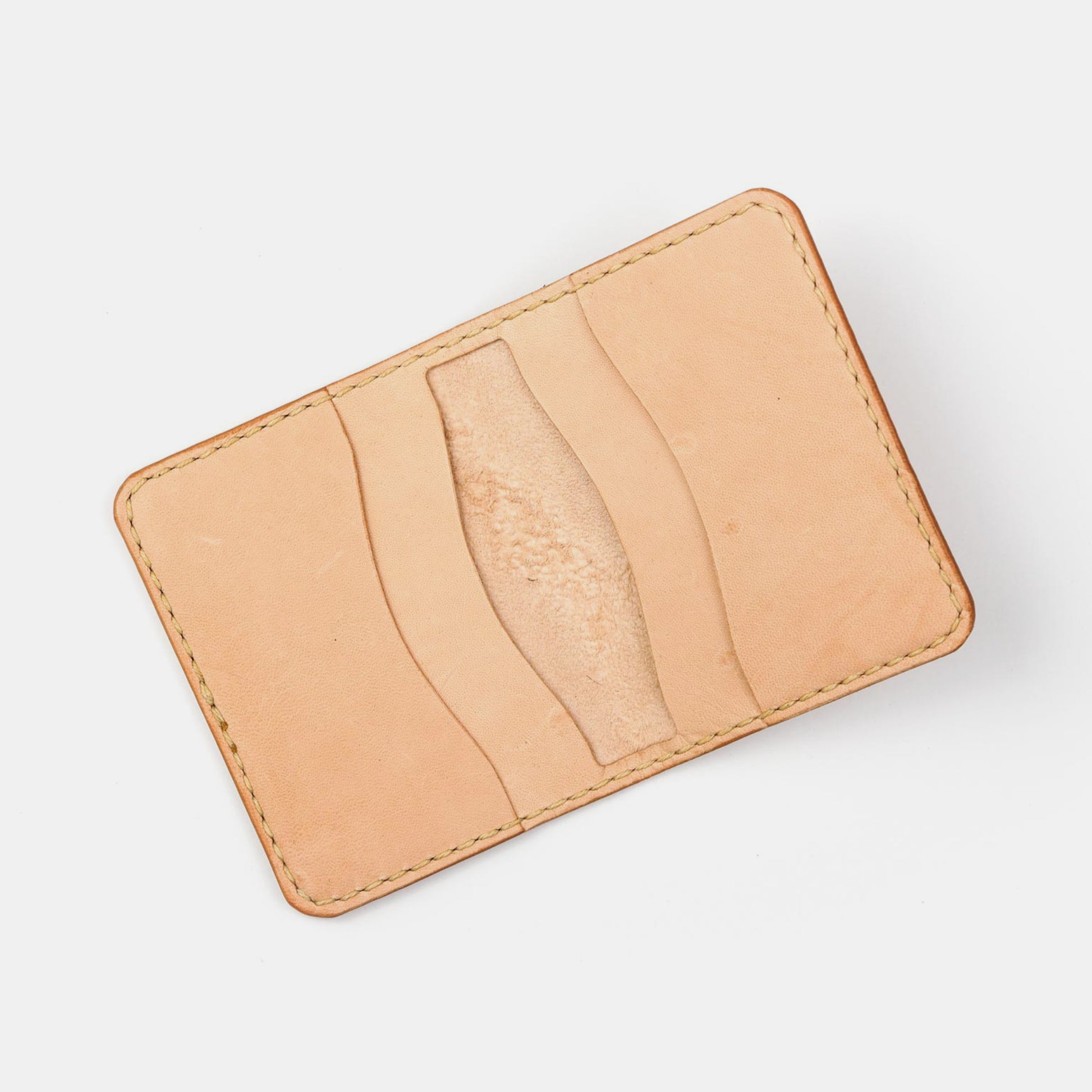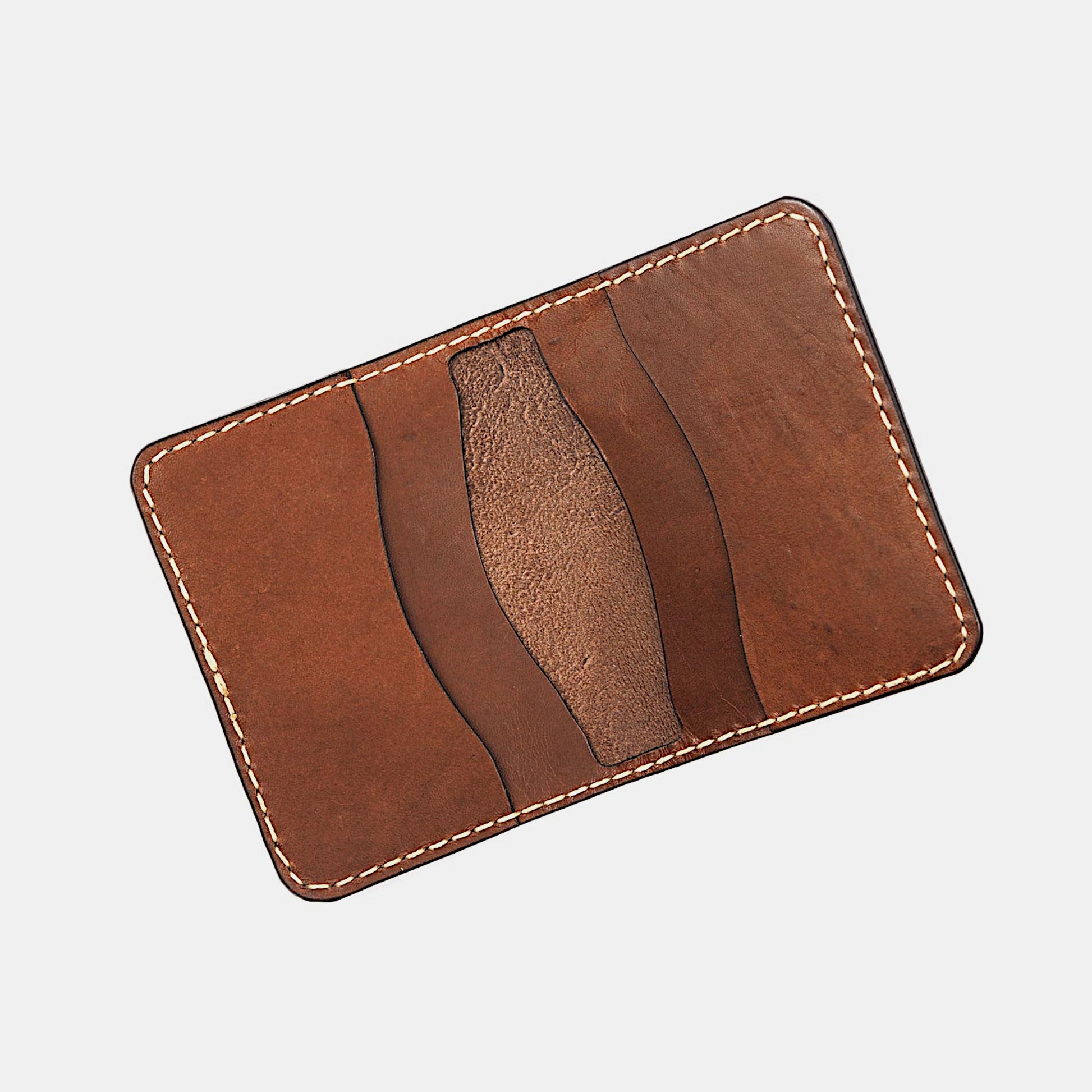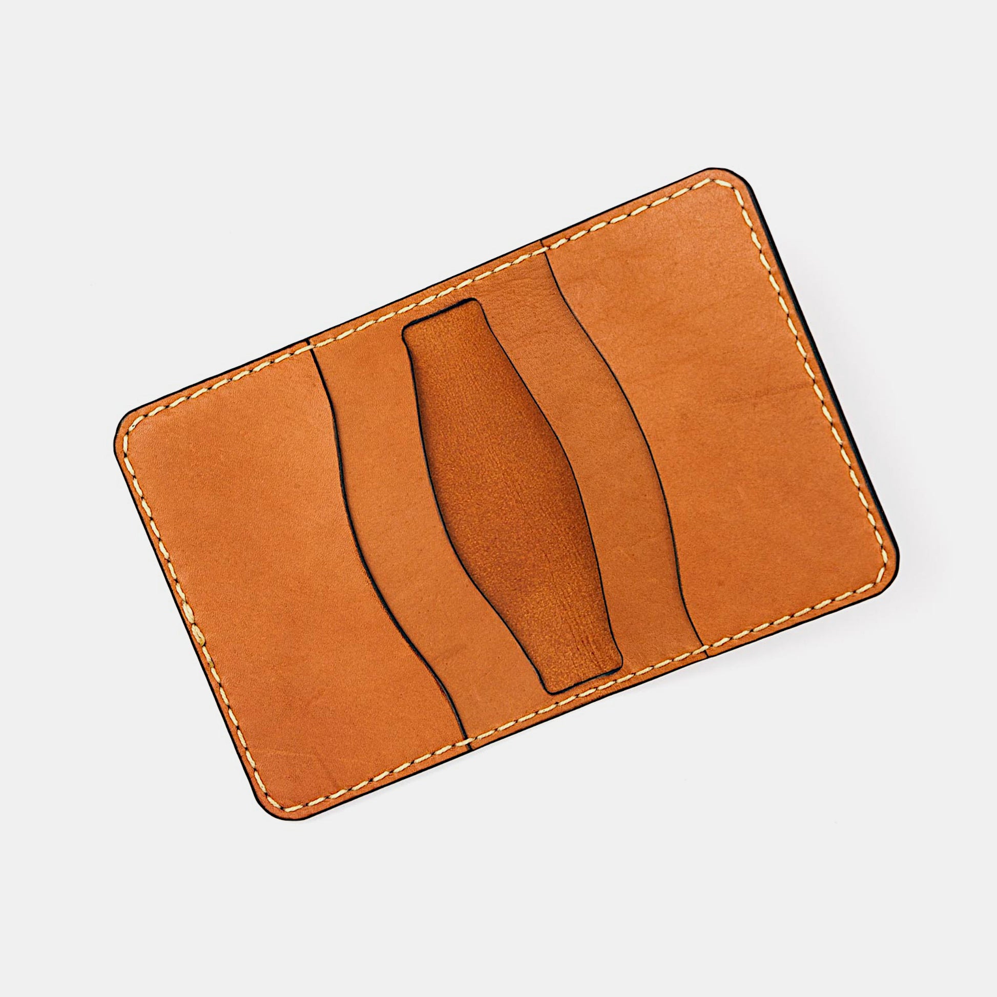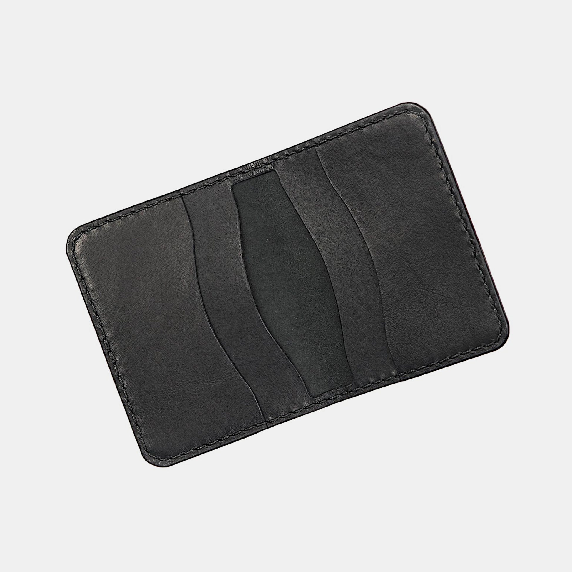 This handcrafted horizontal card wallet has 5 pockets: 3 card slots and 2 inner compartments for cash or extra cards. It's made of full-grain veg-tanned kangaroo leather and handstitched which makes the wallet very slim, strong and durable.
